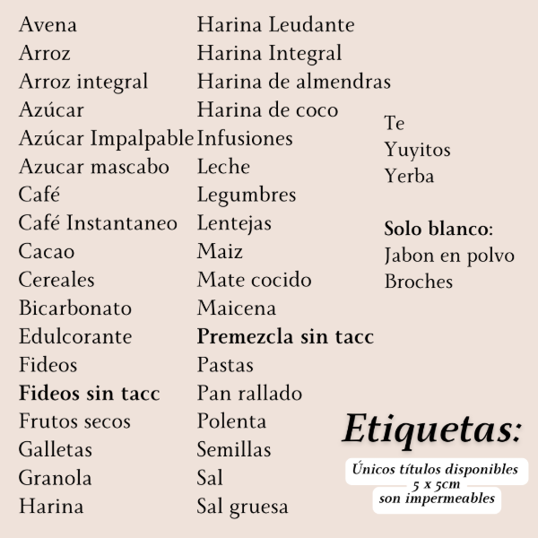 5 contenedores de acrílico ETIQUETADOS con cierre perfectamente hermético.
